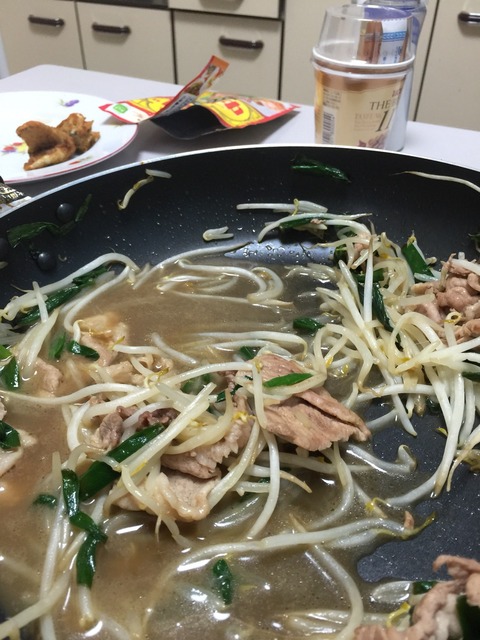 佐渡のスーパーたんぽぽで購入したもやしと豚肉の炒めもの!