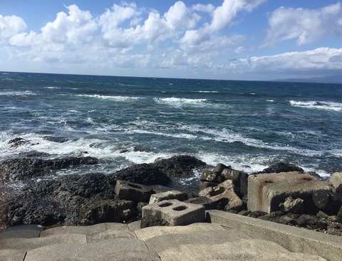 風も強いしサーフは諦めてナビを頼りに、漁港を回り、いい感じの地磯に入れる漁港を発見!