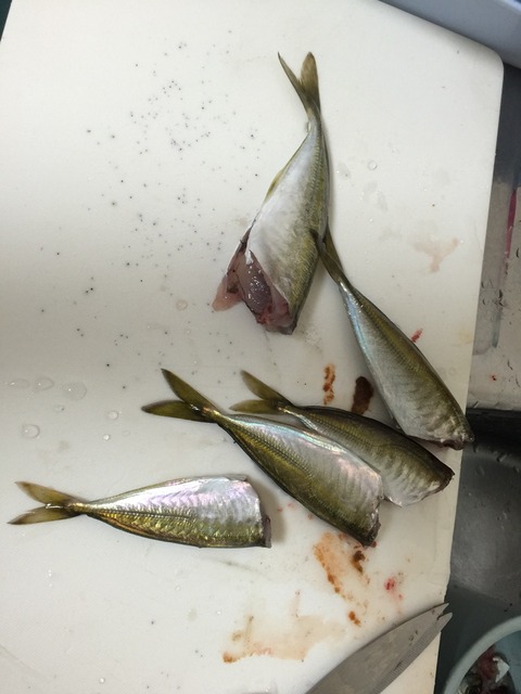 ガスが復活したので、アジの唐揚げと、メバルの塩焼き!