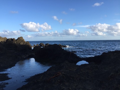 ベースキャンプ前サーフの岩場の方を探索してみるも、届く範囲は浅すぎてどうも釣れそうにない。