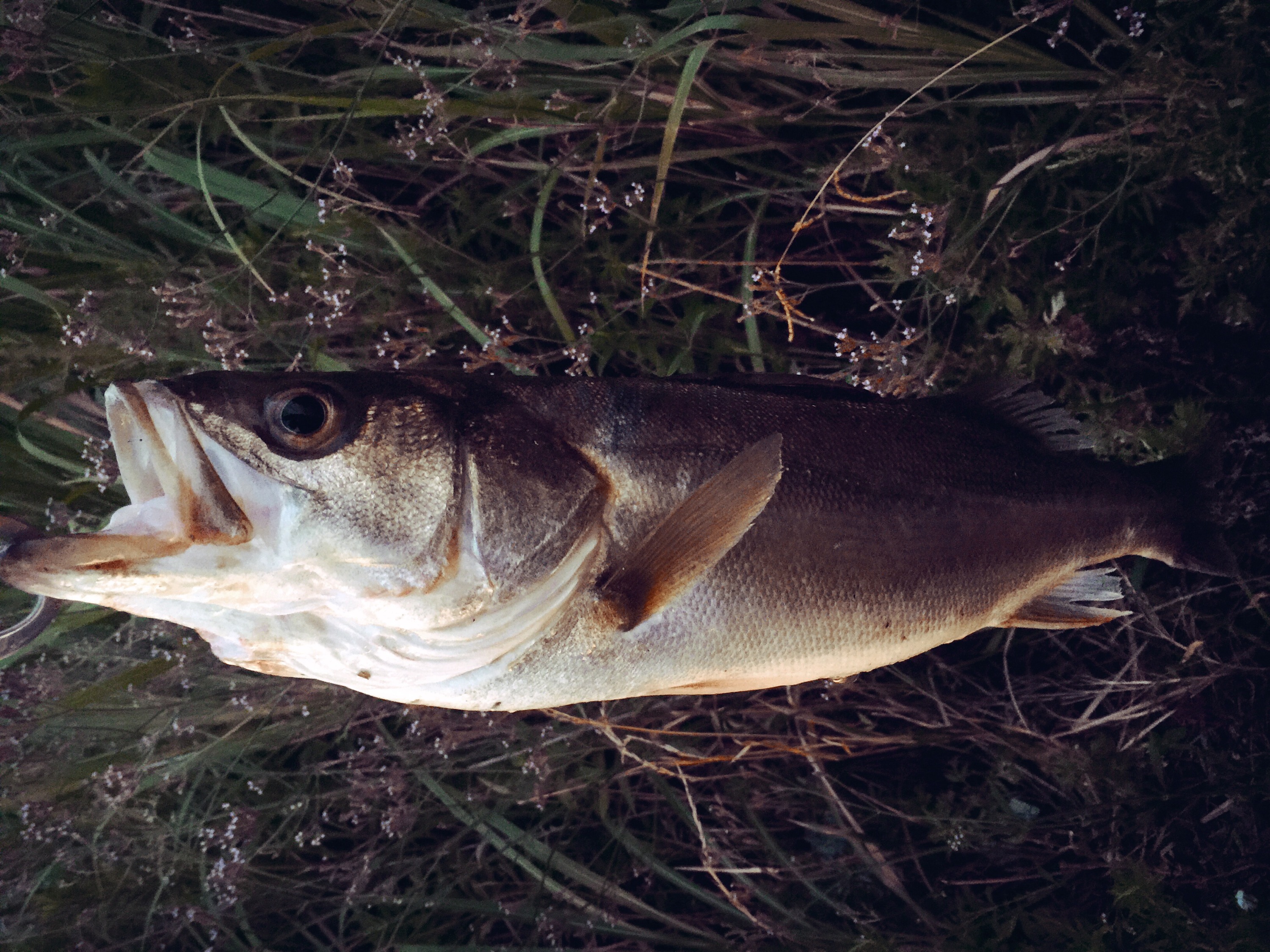 シーバスってこんなに引く魚だったけ?足元まで寄せるとグングン潜る。