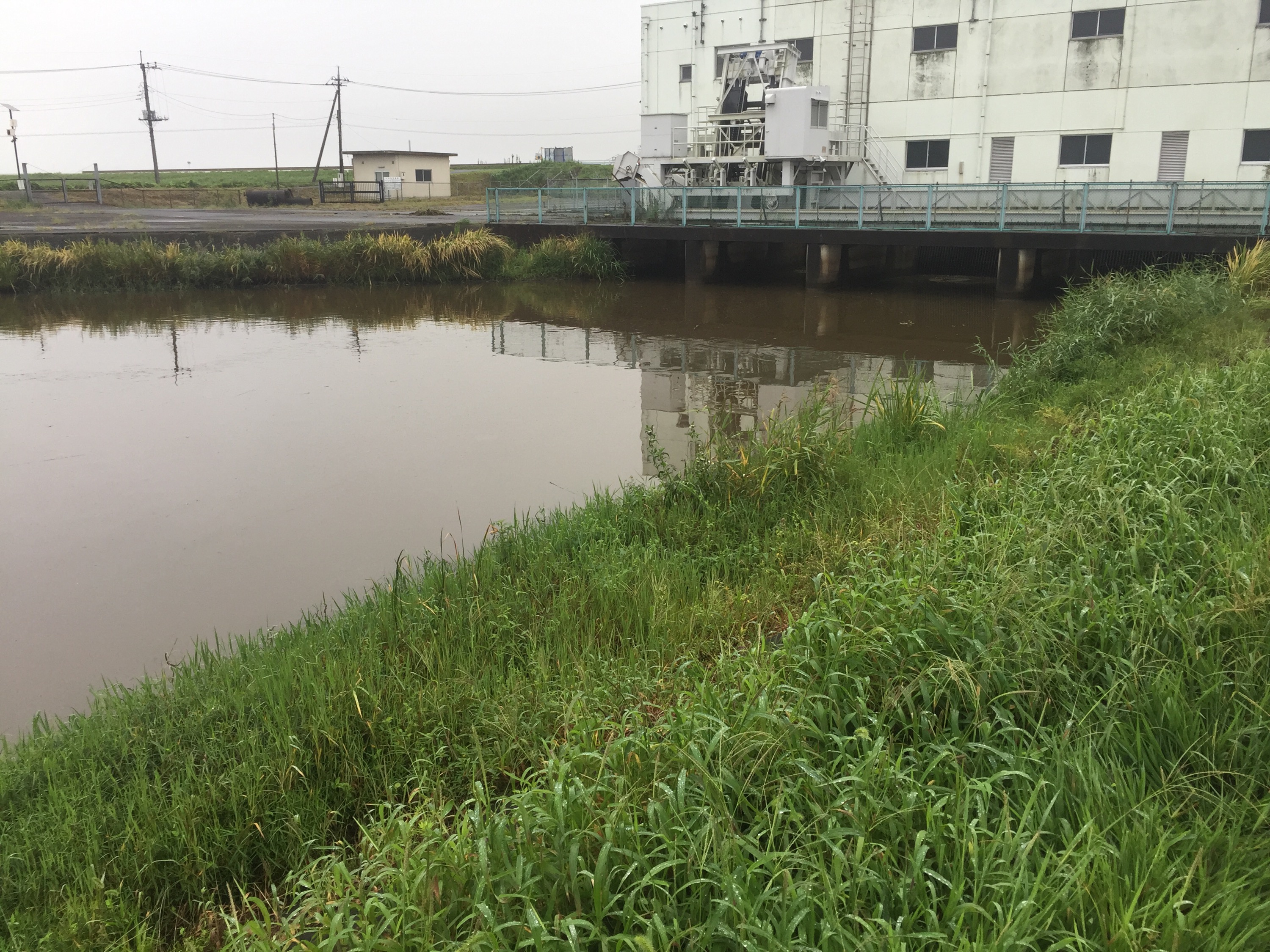 写真は水門周りなんですが、分かりますかね?足場が水没しておりました。