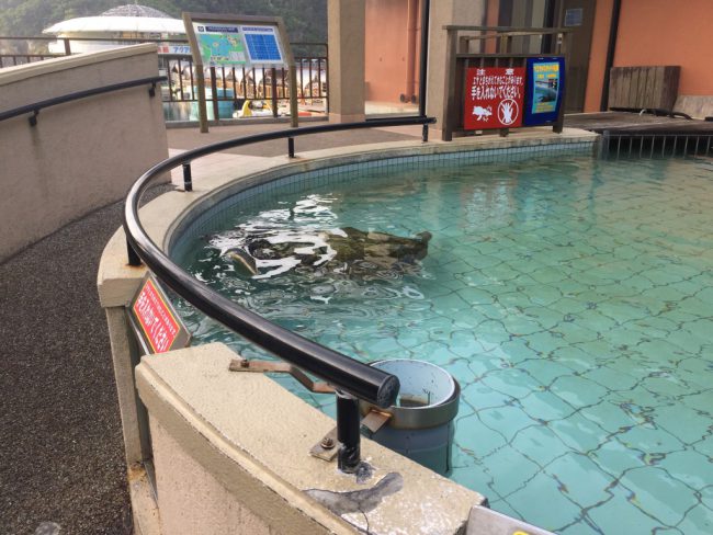 水族館の入り口にウミガメがいました。(生きてる)