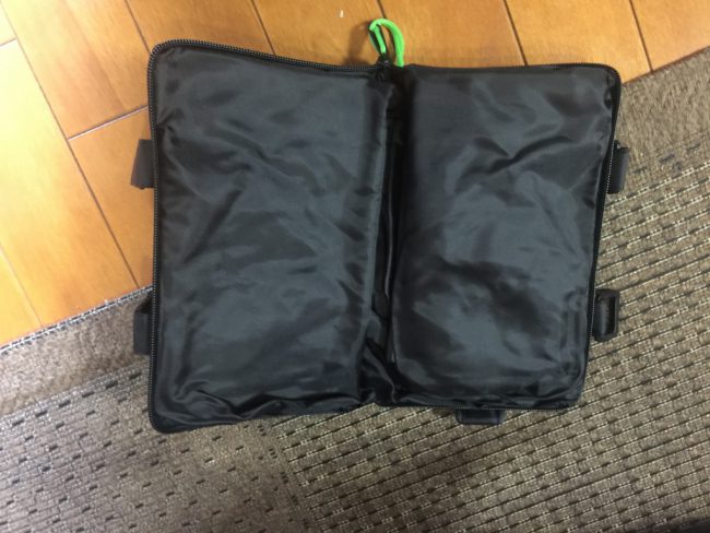 ジッパーの色で判別できる。黄色ではなく、緑色のが輪行ができるバックのタイプ。