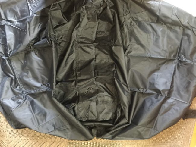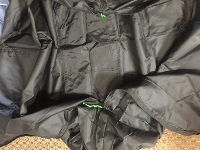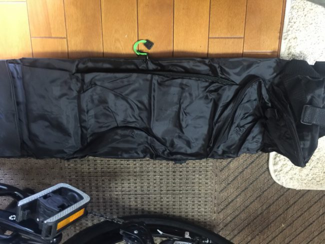 袋自体はテロテロの素材でかなり薄い。なので自転車を保護する力は皆無。でも薄くないとバックがかさばるし、重くなってしまうのでこれはしょうがない。