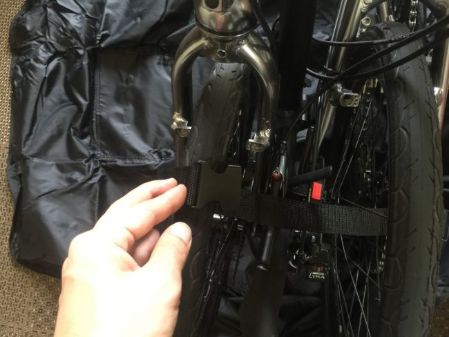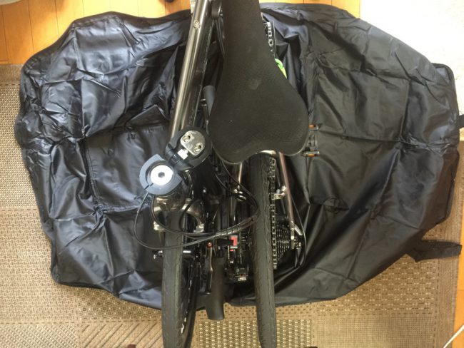カバーのタイプは自転車に上から被せるだけらしい。自転車が露出していると輪行はNG。