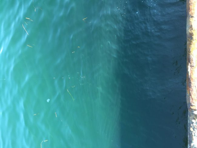 5時には完全に明るい。水の中が見えるようになると、港内にたくさんいた小鯖が足元を泳いでいるのが目視できた。