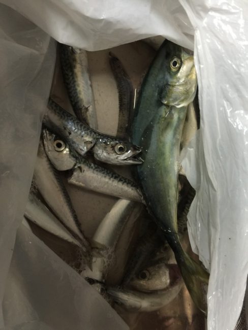 数匹、イワシがまじり、奇跡的にツバス(ぶりの子ども)が1匹釣れました。