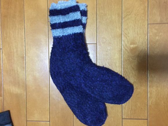 たしか、しまむらのだったと思うのだけど、部屋用のモコモコ靴下をレイヤーテック靴下の上から履きました。