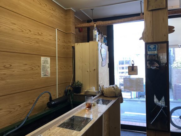 なんかお洒落な缶詰も置いてあって、お酒とフードをつまみながら釣りができる空間になってました。