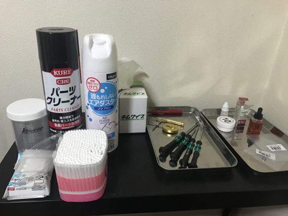 脱脂やオイル漬けの待ってる間に、綿棒をパーツクリーナーに浸して他の部分の掃除をする。