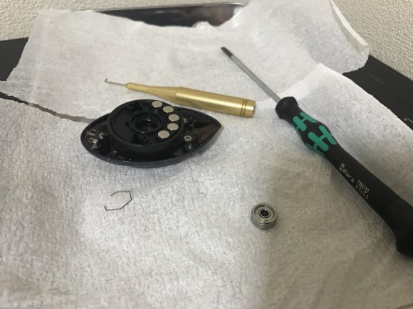 ネジを外すと中にハマってるベアリングが取り出せます。