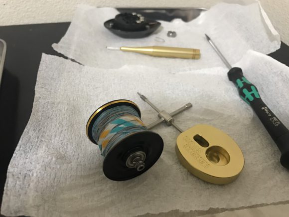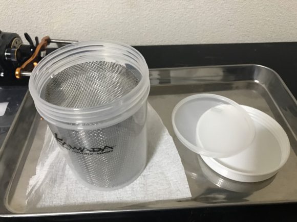 10分3セット漬け込んだら、スプールベアリングはいい感じにシャーーーっと回るようになりました。