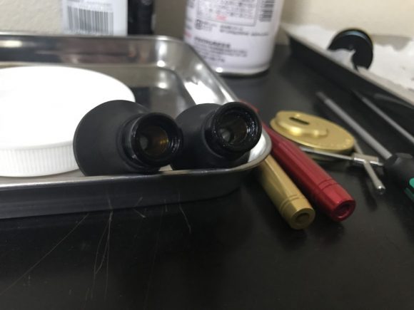ついでにネジやハンドルノブの蓋もきれいにしちゃおう。組み立てた後に残った油がベアリングに付着したら意味ないから。