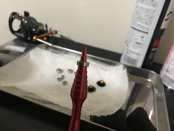 ちなみに今回は既存のベアリングをチューンするだけでなく、ハンドルノブへのベアリング追加も行う。
