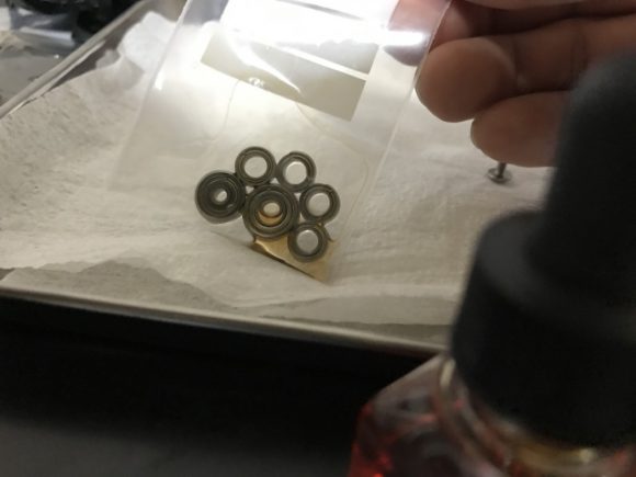 その場合、オイルはベアリング1つに対し、1滴たらすだけ。薄い膜が形成されればOK。