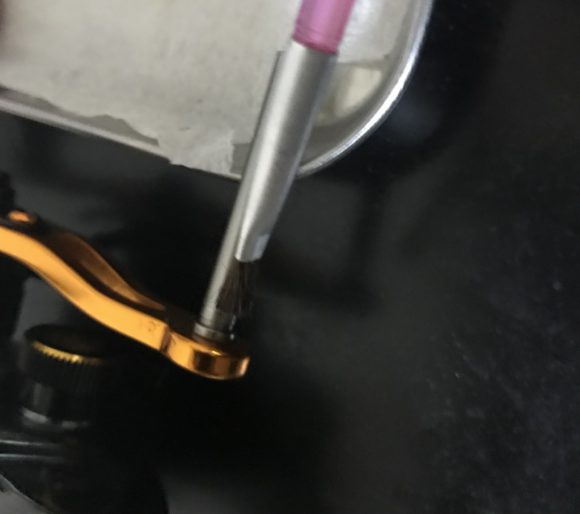 キレイにした場所には、ベアリングに使うのと同じオイルを塗っておく。