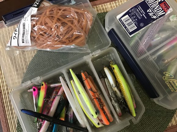 ただ、他のルアーが輪ゴムで留められていたら、ちょっとくらいフックむき出しのルアーが混ざっていても案外絡まりません。