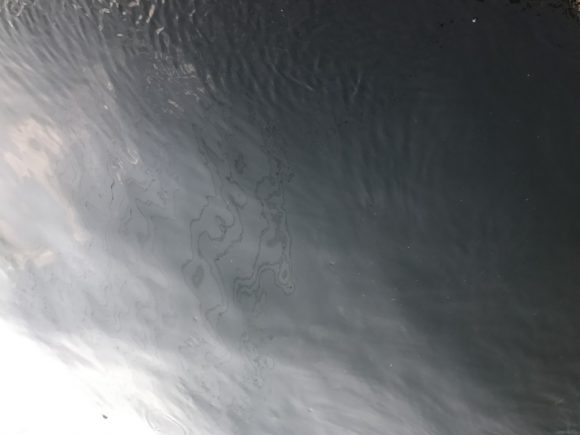 画像では分かりづらいけど、水面を覗くと壁際にはものすごい数のベイト。