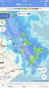 天気予報では晴れで風も穏やかなはずだったのに..!アメダスをみたらピンポイントでゲリラ豪雨みたいな感じになっていた。
