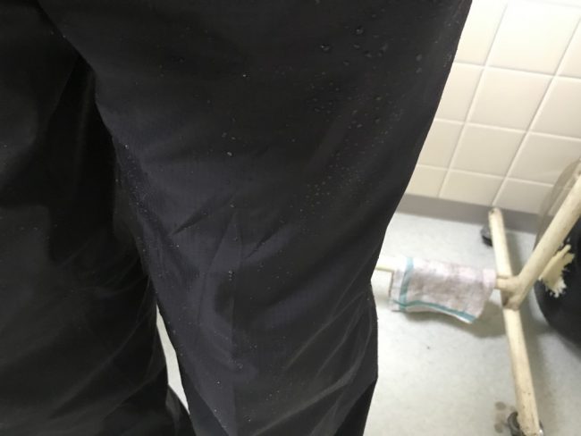 ワバシュジャケットの方は表面が濡れたような感じになってるレベルですが、レイントレッカーはぱっきぱきに弾いてました。