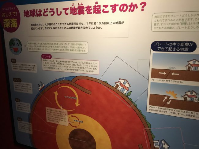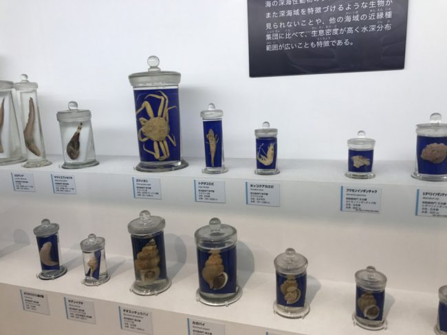 生き物の展示はなくて、標本や深海探索船の撮った映像やパネルが展示されています。