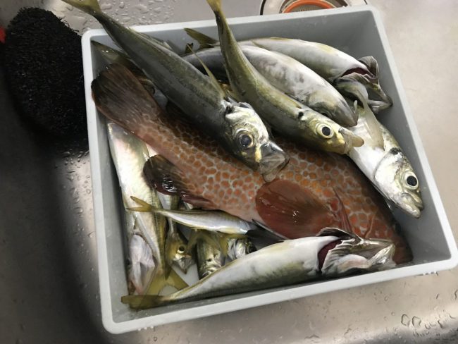 大きめのをピックアップ。アジが30cmくらい。
