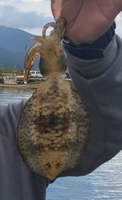 エギングで友人二人が速攻で拳〜手のひらサイズのイカゲット。