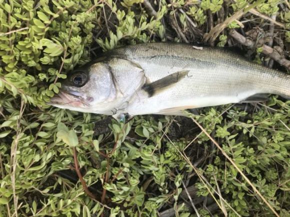で、こいつを寄せてくる間に他のシーバスが何匹が寄ってきてるのが見えたので、まだ釣れる気がするっつって。