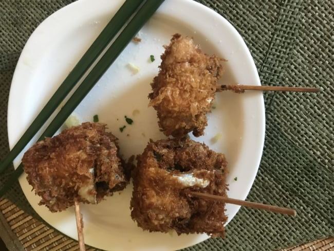 ロールフライ。シソとチーズと梅チューブをロールしてみた。激ウマ。チーズはたくさん入れたほうがいいかも。