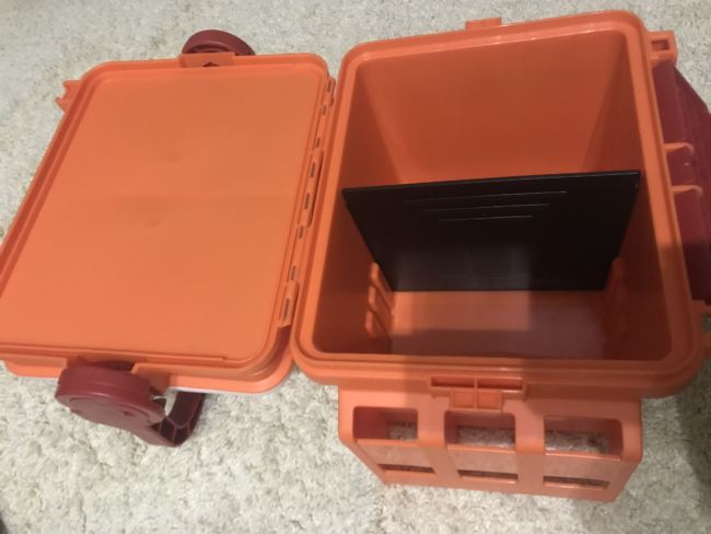ルアーケースは縦に入れられない。横にして入れますが、その場合は仕切板は使えません。