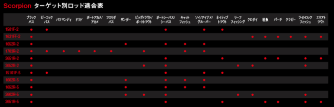 魚種は問わないってことで、狙いたい魚種別おすすめロッドが分かる資料もあって親切ですね。