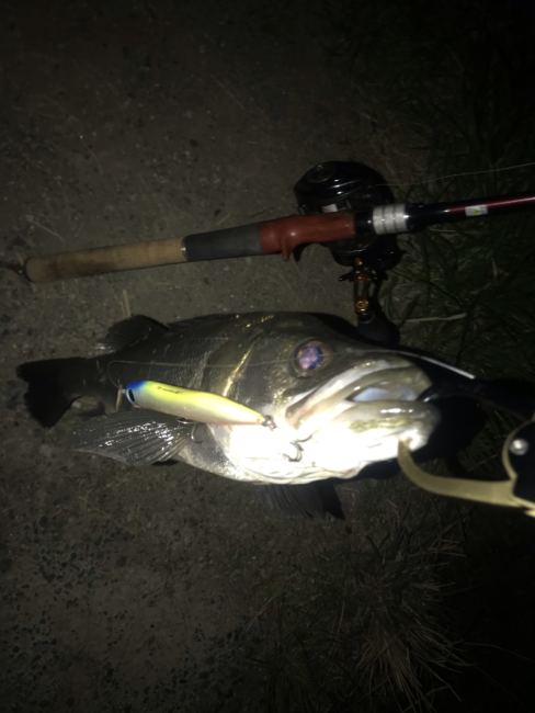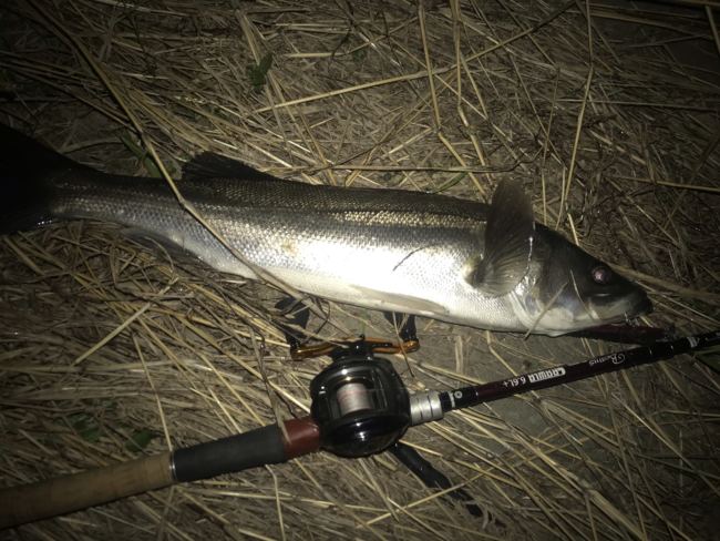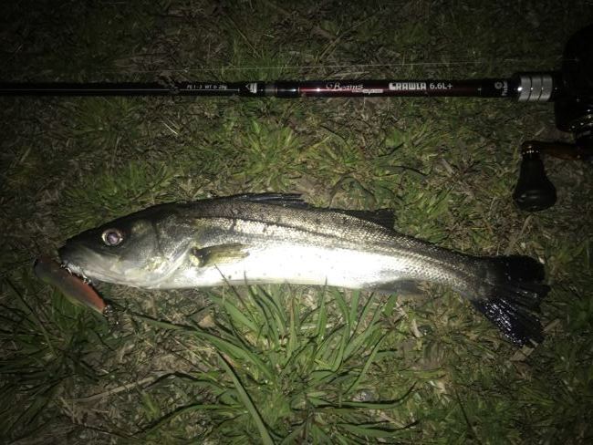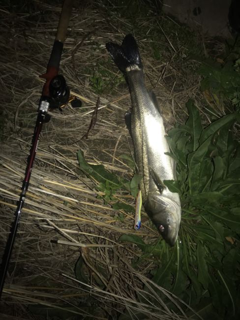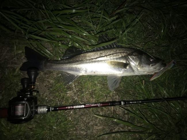 流れはやや緩やかだったけど、前日と同じポイントで30cm台のシーバス。