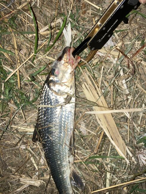 グリップで掴んだ瞬間、「あ、これは無理に陸にあげちゃいけないサイズだ」と思い、水辺からあげずに写真撮影したので上手く撮れずにすみません。