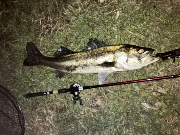 翌日もバチ発生。まったく同じポイントで今度は50くらいのシーバス。